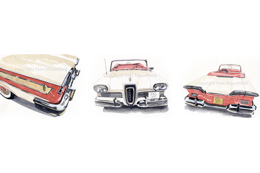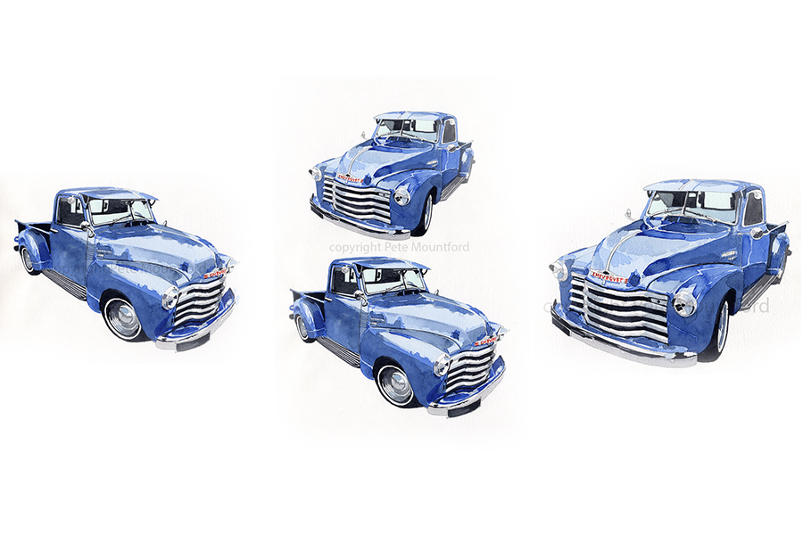 Pete painted this classic car from two angles to show off this car’s strong lines.