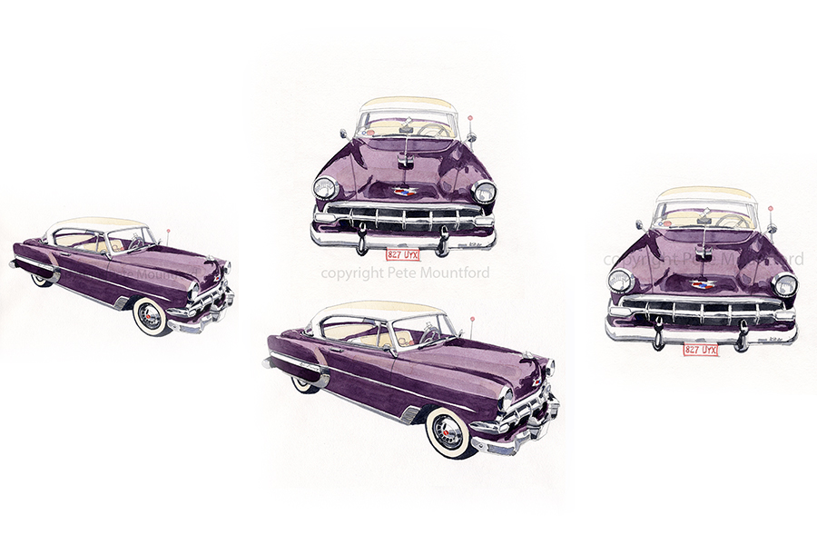 Pete painted this classic car from three angles to show off this car’s sleek lines.