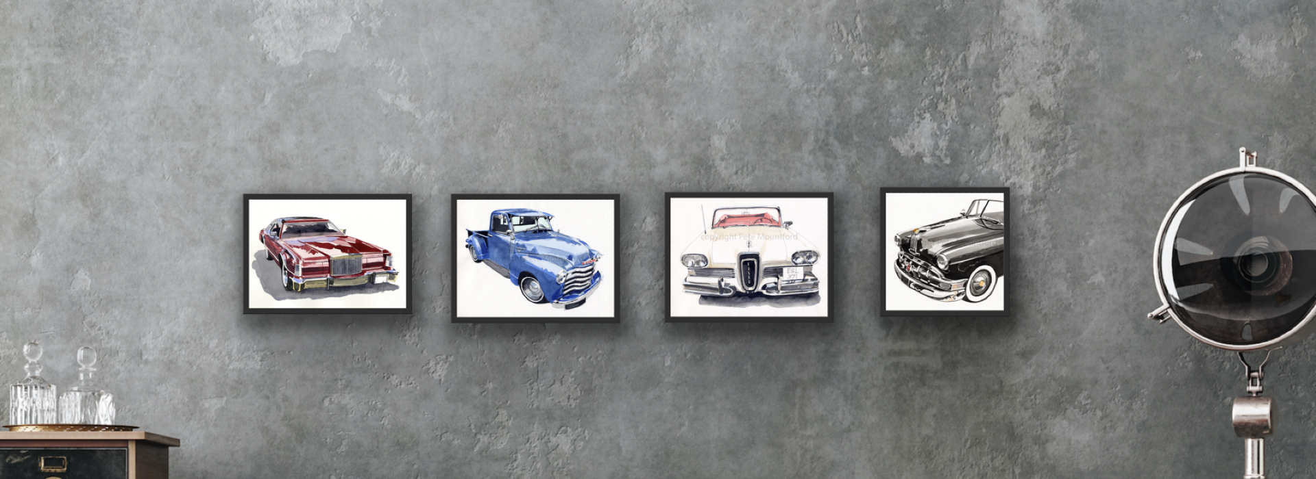 Pete painted this classic car from two angles to show off this car’s classic lines.