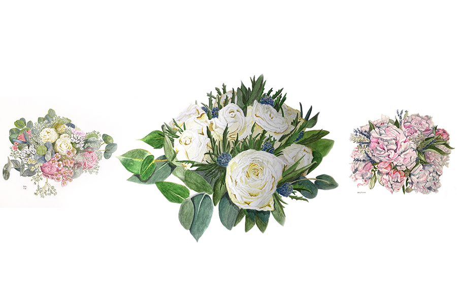 Sue paints wedding bouquets which makes for an unusual and original gift for the happy couple. A first anniversary, a memory or a celebration. Commissions POA.
