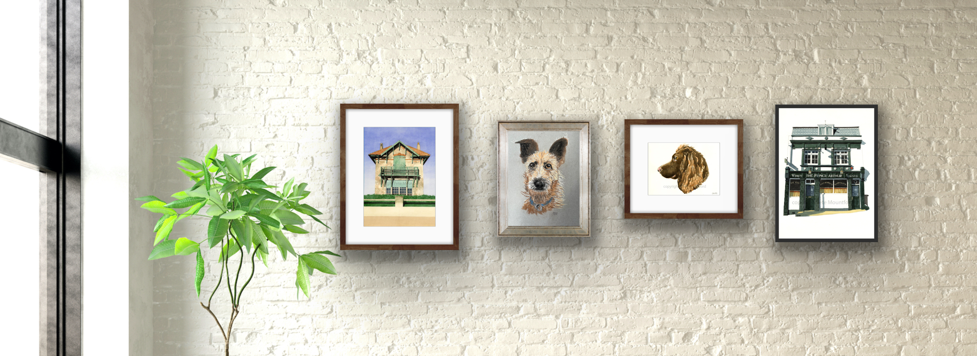 Both Sue & Pete offer portraits of dogs, Pete paints his in watercolour, Sue uses chalk pastels.